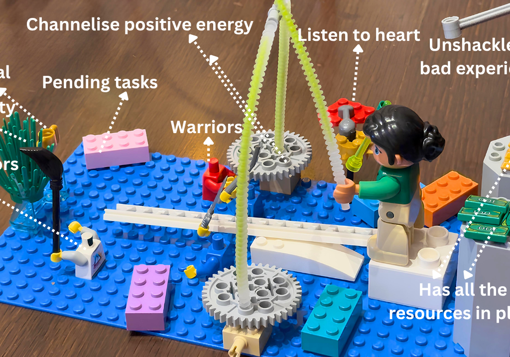 We began with an hour of skills-building. First came the legendary tower, then Imaginopedia, followed by quick builds on what energises them at work and the team member they don’t want to be. The bricks did what they always do, bringing people in as themselves. And slowly the shoulders began to drop.