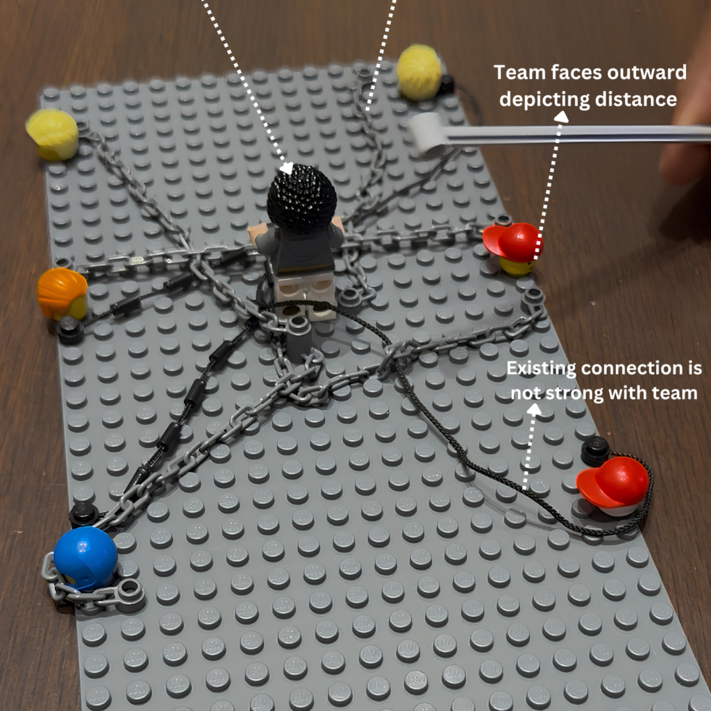 Each person picked a teammate’s name at random and began building. When they shared their stories, no names were revealed. As Tara was the only woman in the room. So, they addressed her as this “person” while narrating the metaphors and meaning behind the model. I repeated the round to allow everyone to build for one another.
