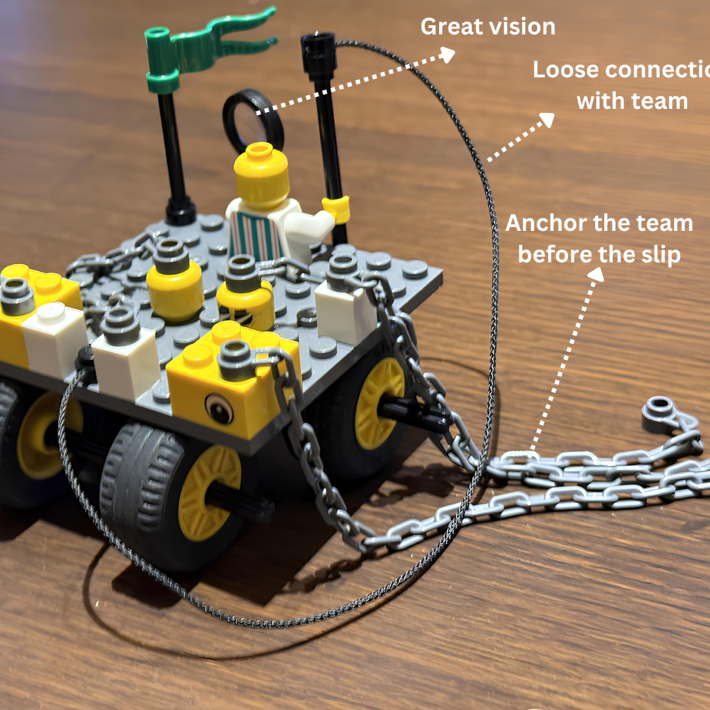 One more reflected how nicely she maintains a strong vision, but is at risk of losing the team’s engagement due to weak or “loose” connections. To avoid setbacks and disengagement, the model advises proactively anchoring the team, reinforcing unity and support before a potential “slip” jeopardizes collective progress. (photo 3)
